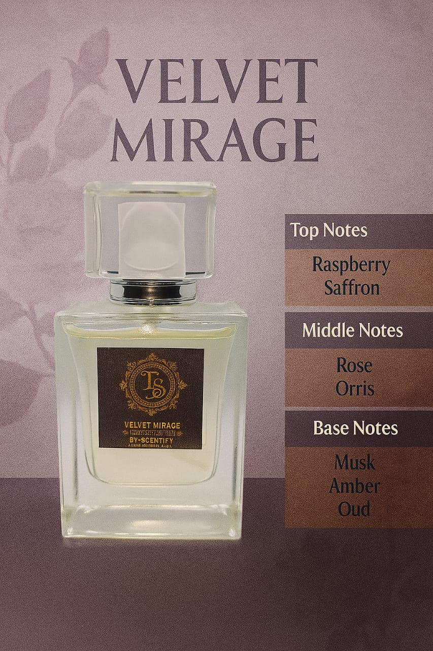 Step into a world of elegance and mystery with Velvet Mirage, a luxurious floral fragrance that redefines modern femininity. Inspired by the soft allure of twilight blooms and the quiet strength of a confident woman, Velvet Mirage is both graceful and bold — velvety, sensual, and unforgettable.